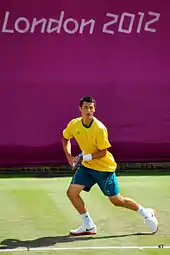 - ↑ Leo Schlink (30 July 2012). "Bernard Tomic tumbles to leave only Lleyton Hewitt in singles". Herald Sun (Australia). Retrieved 1 August 2012.