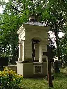 The Bernardine Cemetery (Lithuanian: Bernardinų kapinės, Polish: Cmentarz Bernadyński), is one of the three oldest cemeteries in Vilnius, Lithuania. It covers about 38,000 square metres and has an estimated 14,000 burial sites. It was established in 1810 by the Bernardine monks of the Church of St. Francis of Assisi, just east of the city center in the Užupis district, and is situated on an embankment of the Vilnia river. Its development was a consequence of Tsarist authorities of the Russian Empire prohibiting burying the dead near churches. The residents of Vilnius moved the cemetery to what was then the outskirts of the city.