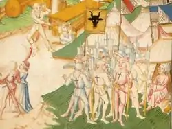The Berner Schilling (or Amtliche Chronik, also Grosse Burgunderchronik, Great Burgundy chronicle) is a chronicle of Diebold Schilling the Elder of Berne (1480s), covering the history of the Old Swiss Confederacy up to the Burgundian Wars.