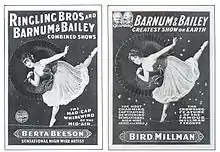 ![]() Two nearly-identical circus posters, Beeson (left) and Millman (right). | |