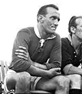 He played for Degerfors IF and Atalanta B.C.[2] He won the gold medal at the 1948 Summer Olympics, along with his brothers Knut and Gunnar Nordahl.[3] After the Olympics, he and Gunnar transferred to Italy and, due to being in a professional football league while the Swedish football was all amateur, they were not called to the 1950 FIFA World Cup.[4] He was capped 15 times for the Sweden national football team.