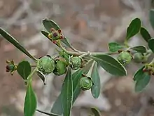 Bertya opponens[1] is a shrub/tree in the family Euphorbiaceae, native to Australia and found in New South Wales and Queensland.[1][6][7] It is found on ridges amongst mallee in shallow soils.[1] It flowers in July and August.[1]