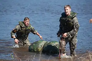 The Best Ranger Competition was first held in 1982.[1] The first competitions were limited to Ranger units, but from 1984 onwards it accepted teams from throughout the Army.[2] As of 2018, the competition involves 50 two-man teams, mostly from the 75th Ranger Regiment and the ARTB, but also including a Coast Guard team.[3] The competition takes 62 hours and involves tests of physical fitness, including runs and marches, and of marksmanship. The exact composition of events changes yearly.[3]