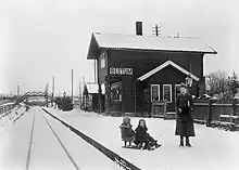 A new station building, which still stands, was drawn by Eivind Gleditsch of NSB Arkitektkontor and completed in 1918,[9] on the other side of the track and the previous station.[6] This and the other new stations on the Drammen Line were the first stations in Norway designed for double-track operations.[10] Meanwhile, the Norwegian State Railways announced their intention of changing the spelling of the station's name from Bestum to Bestun. This was met by an official protest by the residents' association.[11] The new name was taken into use on 1 September 1922.[6]