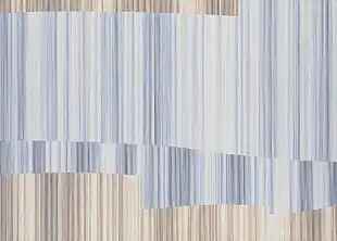 Writers have compared Kaufman's later work to the minimalism of Agnes Martin, but distinguish it for its greater variety and embrace of unpredictability, both within and across individual works.[23][9][4] Kaufman employs simple means—geometric shapes, skewed and parallel lines, semi-transparent, solid or brushy bands and grounds—with finely calibrated differences in brightness and hue to achieve states of density, dissolution, and movement.[28][5][4][29] Critics identify her overlaying of different yet exacting configurations and systems as a characteristic strategy that introduces slippage (or non-alignment) into the work and wreaks havoc with order and symmetry.[4][23][9]