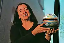 ![]() Korber with basket made for her by Zulu women at the orphanage she helped found | |
