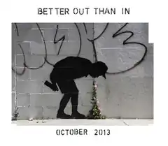 Better Out Than In was a residency undertaken by pseudonymous graffiti artist and political activist Banksy in New York City during October 2013. Banksy unveiled at least one work of art daily, documenting it on both a dedicated website and an Instagram account. The majority of the works were stencil graffiti and chiefly political, a distinctive characteristic of Banksy. Other pieces and multimedia exhibits toyed with dark humor and satire.