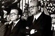 Craxi was appointed to the vacant position of National Secretary of the party, ending years of factional fighting within the PSI.[30] Ironically, the "old guard" saw him as short-lived leader, allowing each faction time to regroup. However, he was able to consolidate power and implement his policies. In particular, he sought and managed to distance the party from the Communists, bringing it into an alliance with Christian Democracy and other centrist parties, while maintaining a leftist and reformist profile.[31]