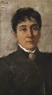 During a trip to Vienna, she saw some works by the Dutch marine painter, Hendrik Willem Mesdag, which greatly impressed her. In 1885, she had a chance meeting with him and his family. This led to studies with him at his workshop in The Hague.[2] She became close friends with his wife, Sientje van Houten, who painted a portrait of her. In 1890, she studied briefly with Puvis de Chavannes in Paris. [1]