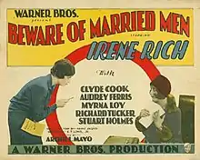 Beware of Married Men is a 1928 American synchronized sound comedy film directed by Archie Mayo and starring Irene Rich, Clyde Cook and Audrey Ferris.[1] While the film has no audible dialog, it was released with a synchronized musical score with sound effects using the sound-on-disc Vitaphone process. The film was produced and distributed by Warner Brothers.[2]