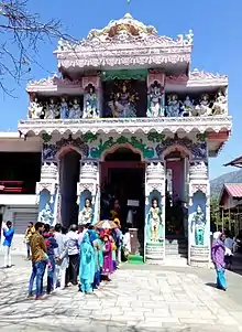 Bhalei Mata Temple is dedicated to the Hindu Goddess Bhadra.[1] It is located on a 3,800 feet (1,200 m) high spur in Bhalei, which is now a Sub-Tehsil headquarters. It is about 35 km from Salooni Tehsil headquarters. The temple can be approached either from Chamba or from Dalhousie and is at a distance of 40 kilometers from Chamba and 30 kilometers from Dalhousie.[2] The deity is in the front of an image of black stone of two feet height and is enshrined in the sanctum sanctorum of the temple. Bhadar Kali draws a large number of pilgrims from far and wide. A big havan ceremony is performed during navratras of Ashwin and Chait months.
