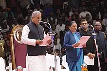 Bhupesh Baghel (born 23 August 1960), popularly known as Kaka, is an Indian politician who served as the 3rd Chief Minister of Chhattisgarh from 2018 to 2023.[1] He was president of Chhattisgarh Pradesh Congress from 2014 to 2019.[2][3] He represents the Patan constituency in the Chhattisgarh Legislative Assembly since 2013 and from 2003 to 2008. He had been cabinet minister of Transportation in undivided Madhya Pradesh in Digvijaya Singh government from 1999 to 2003.[4][1] He was first Minister for Revenue, Public Health Engineering and Relief Work of Chhattisgarh.[4][1]