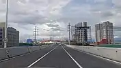 Near the viaduct is tower 34 that collapsed last April 19, 2017 due to a fire caused by informal settlers living under the tower.[2] It was later removed and retired, and replaced with a new double-circuit steel pole located at Highway Homes Subdivision.[3] Bipole tower 34A is located where NAPOCOR-era lattice tower 34 was once located, with steel poles 34B and 34C which are also double-circuit poles are located along the western side of Alabang Viaduct.