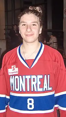 The following seasons she played with the Dawson College Blues in the AA College Women's Hockey League.[4][5]