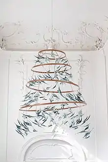 Since 2016, her work has been selected for the Dutch pavilion during the Salone del Mobile in Milan, curated by Nicole Uniquole.[13] In 2019, she showcased the “Swarm” chandeliers and a series of vases in a presentation, which was inspired by the light and colour palette of the master painter Rembrandt van Rijn. The fragile glass birds suggested the movement of large flocks of starlings. She is called la Venini dei Paesi Bassi, which means the Venini of the Low Countries, referring to the famous Venetian glass designer and namesake of the largest glass factory in glass, in Murano. In 2018, Smit presented the Copier Unveiled, a new series for the "Copier Revisited" collection at Royal Leerdam Crystal.[14]