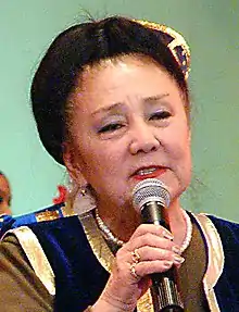 Bibigul Akhmetkyzy Tulegenova (Kazakh: Бибігүл Ахметқызы Төлегенова, Bibıgül Ahmetqyzy Tölegenova; born 16 December 1929) is a Soviet-Kazakh opera singer (lyric and coloratura soprano), actress and teacher. Among her awards are Hero of Socialist Labor (1991), People's Artist of the USSR (1967), and the USSR State Prize (1970).[1][2]