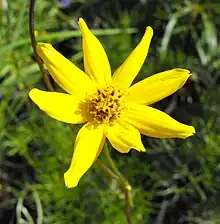Bidens nudata is a species of perennial plant in the family Asteraceae commonly known as the Cape beggar's tick or Baja tickseed. This species is endemic to the Sierra de la Laguna and the Sierra de las Cacachilas of Baja California Sur, Mexico.[1] It is characterized by a mounding habit, pinnate green leaves and large yellow daisy-like flowers. This species has found uses in horticulture as an ornamental, providing a drought-tolerant and durable plant for the garden.[2]