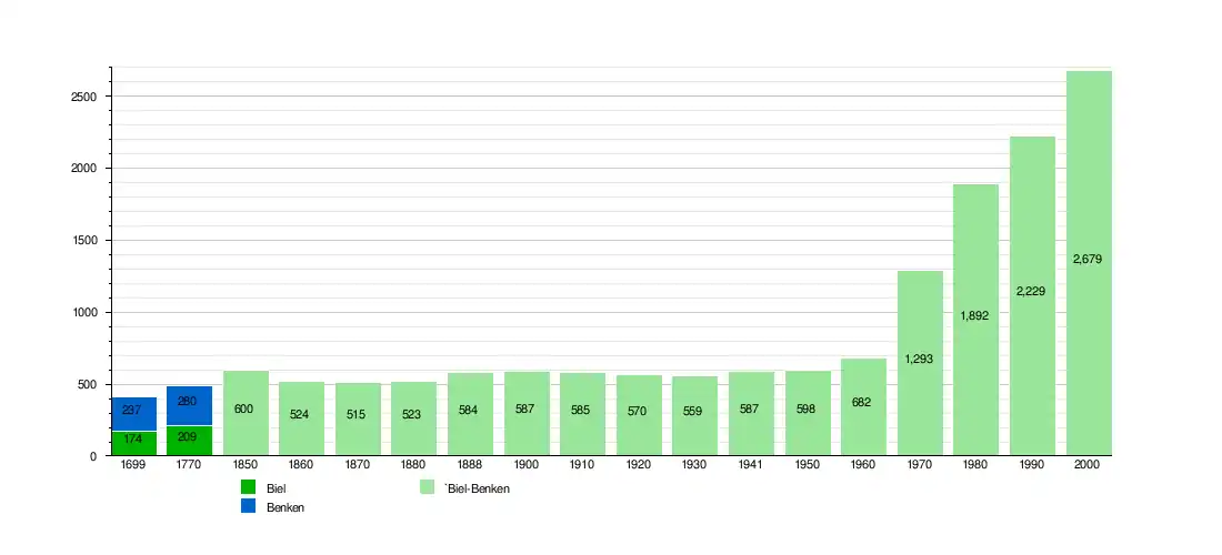 Biel-Benken has a population (as of June 2021) of 3,577.[7] As of 2008, 11.4% of the population are resident foreign nationals.[8] Over the last 10 years (1997–2007) the population has changed at a rate of 25.5%.[9]