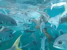 The horse-eye jack (Caranx latus), also known as the big-eye jack, is a game fish and minor commercial fish in the family Carangidae. Its appearance is similar to that of the crevalle jack, although the horse-eye jack's head is not as blunt. The horse-eye jack is known to feed on smaller fish and on many invertebrates, such as shrimp and crab.