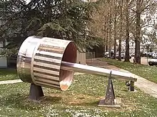The BEBC experiments were: T225/231, T243, WA17, WA19, WA20, WA21, WA22, W24, WA25, WA26, WA27, WA28, WA30, WA31, WA32, WA47, WA51, WA52, WA59, WA66, WA73, and PS180.[13] By the end of its active life in 1984, BEBC had delivered a total of 6.3 million photographs to 22 experiments. Around 600 scientists from some fifty laboratories throughout the world had taken part in analyzing the 3000 km of film it had produced.[6][14] BEBC enabled the discovery of D-mesons and promoted the developments of neutrino and hadron physics, carrying out one of the richest physics programs.[5] It is now on display at CERN's Microcosm Museum.