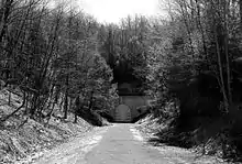 The Big Savage Tunnel is a rail trail tunnel located about 9 miles (14 km) southeast of Meyersdale, Pennsylvania. It, as well as the Pinkerton Tunnel, Borden Tunnel, and Brush Tunnel are part of the Great Allegheny Passage trail.[2] It was originally built for the Connellsville subdivision of the Western Maryland Railway.[3]