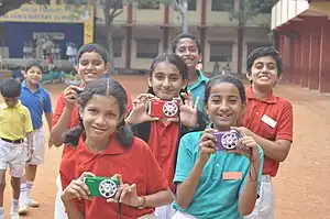 According to several interviews with Nayar, the idea of creating a camera for experiential learning stemmed from the 2004 film Born into Brothels, an Academy Award-winning documentary by Ross Kauffman and Zana Briski that profiles several children living in the red light district of Kolkata.[4][5][6][7] The filmmaker gave each child a camera and taught them photography so that they could begin to look at their world with a new set of eyes, unveiling hope and uncovering hidden talents from within themselves. As a result, many of them found the strength to break from their circumstances and begin charting out meaningful lives. Nayar launched the Bigshot project in 2006, and the first set of Bigshot cameras were produced for use in pilot workshops in 2009. In August 2013, EduScience, a Hong Kong-based manufacturer of toys and kits for learning, began distribution worldwide.[8][9]