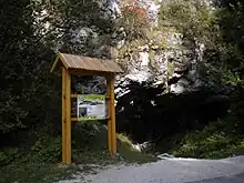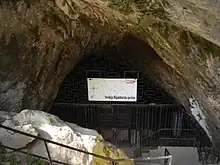 The middle part of Bijambare is a karst plateau with all its commonly observed characteristics: caves, lost rivers, intriguing funnel-shaped depressions, rocky massifs and Bijambarsko Lake.[3] There are numerous karst caves in the protected area, explored so far are the Middle (The Main) Bijambare Cave, Ledenjača, Lower Bijambare Cave, Ðuričina Cave, Upper Bijambare Cave, Dimšina Cave, Ledenica and New Cave.[4] The largest and most famous of the caves is the Bijambare Cave, which is open to visitors. It is 420 meters long and is criss-crossed by four corridors that are up to thirty meters high and sixty meters wide. The largest corridor is also called the “concert hall” due to its size around 60 m in diameter and 15–30 m in height. The cave has numerous stalactites, stalagmites and curtains as well as tuff stones. It is also called the "music hall" for its acoustic effects.