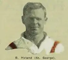 Hyland came to St. George from Mudgee, New South Wales in 1930. He played four seasons with the club between 1930 and 1933, and played in the 1930 Grand Final. He used the name of Bill and Charlie whilst in Sydney but preferred to be known by his nickname Blue.[2] [3]
