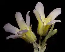 Billardiera venusta is a species of flowering plant in the family Pittosporaceae and is endemic to the southwest of Western Australia. It is a woody climber or shrub with clustered sessile, hooked leaves and groups of four to six pale lilac flowers that fade to yellow as they age.