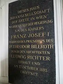 The architect Ludwig Richter was awarded the commission and two years later, on October 27, 1893, the building was officially opened by Theodor Billroth.[1]