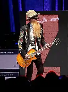 William Frederick Gibbons (born December 16, 1949)[1] is an American rock musician, best known as the guitarist and primary vocalist of ZZ Top. He began his career in Moving Sidewalks, who recorded Flash (1969) and opened four dates for the Jimi Hendrix Experience. Gibbons formed ZZ Top in late 1969 and released ZZ Top's First Album in early 1971. He has also maintained a solo career in recent years, starting with his first album Perfectamundo (2015).