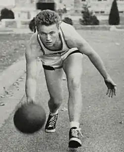 Hassett also played one year for the Georgetown Hoyas in 1942–43 (All American selection), playing in the NCAA Championship against Wyoming in 1943. Hassett played for the AAU Dow Chemics in 1944 after Georgetown dropped basketball due to World War II. He transferred to Notre Dame in 1945. Hassett managed the 24 second clock the first time it was used in the NBA at a Syracuse Nationals game.[2] His brother, John Aloysious "Buddy" Hassett, played Major League Baseball for the Brooklyn Dodgers, the Boston Bees and Braves and the New York Yankees (1936–1942).