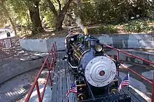 In 1994, the 2-spot was in need of a new boiler and complete overhaul. In the meantime, the new diesel, dubbed #2502 and painted in the Southern Pacific's Black Widow paint scheme, would serve as the primary locomotive of the railroad for eleven years. After a ten year restoration project, the 2-spot finally returned to service in July 2005. The occasion marked the 100th birthday of the steam locomotive and also celebrated the 35th anniversary of the Billy Jones Wildcat Railroad in Vasona Park[4]