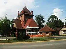 Biltmore Village, formerly Best, is a small village that is now entirely in the city limits of Asheville, North Carolina.[1] It is adjacent to the main entrance of the Biltmore Estate, built by George W. Vanderbilt, one of the heirs to the Vanderbilt family fortune. Once known as the town of Best, George Vanderbilt created this village as a "company town" for the estate workers.[1] The community was planned and designed to reflect the qualities of an English country village. The village had its own church, which is still in operation today as the Cathedral of All Souls, an Episcopal cathedral. The village also had a hospital, shops, a school, a train station, and other services available.