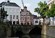 When the first city wall was built in the early thirteenth century, part of the natural stream bed of the east-west stretch of the Grote Stroom (called Marktstroom) came to lay within the city walls. In the wall the current water gate was made. East of it, the Grote Stroom was diverted and led through the northern moat.[3] The next major interference was a connection between the Grote Stroom and the Vughterstroom north of the first city walls. This was achieved by digging the stretch that now runs along the Jan Heinsstraat, probably in 1250-1275.[4] In 1300-1319 a large bend of the Groote Stroom was cut off. It led to the construction of the Geerlingse bridge in the Hinthamer street.[3]