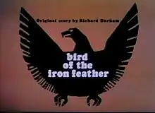 WTTW originally planned to produce five half-hour episodes per week for six months, for a total of 100 episodes.[14] Durham and McIntosh soon realized that they could not produce a high quality show for $6,000 per episode, and pressed for a reduced number of episodes.[14] By November 1969, delays and escalating costs prompted the Ford Foundation to reduce the order to 35 episodes, to air Mondays, Wednesdays and Fridays in the 7:30 pm time slot.[14] Bird of the Iron Feather debuted on January 19, 1970.[5] A Federal Communications Commission complaint about the use of a racial slur and other language prohibited by the FCC in the episode "Speaking of Dreams" prompted the show to be moved to a 9:30 pm time slot with an "adult viewing" disclaimer.[5][6] Ultimately, Bird of the Iron Feather ran for 21 episodes before production ran out of funds.[11][12][15] The final episode aired on Friday, March 6, 1970.[15]