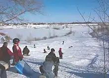 A portion of the community is located on top of a hill formed during the last ice age by a glacial sand deposit, or esker. These sand ridges are some of the highest elevations in south-central Manitoba. The hills in the area were a place for settlers and native peoples to escape to when fleeing high floodwaters along the Red River valley. Birds Hill Park is located on the same ridge of sand eskers as Birds Hill but at the other end of them. A large property in the area was owned by James Curtis Bird after whom the area is named,[2] was a fur trader, chief factor of the Lower Red River district in 1821 and one time governor of Assiniboia.[3] His son, Curtis James Bird a Canadian doctor, politician, and Speaker of the Manitoba Legislative Assembly from 1873 to 1874 inherited the property from his father.[4]
