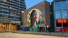 As a part of the artist project #UPStreetRotterdam visual artist Tymon de Laat completed his artwork with the title Birth of a New Age on 19 April 2021. He made a mural near Ahoy Rotterdam and signed it in the presence of Macrooy, in a joint action at an aerial work platform.[8]