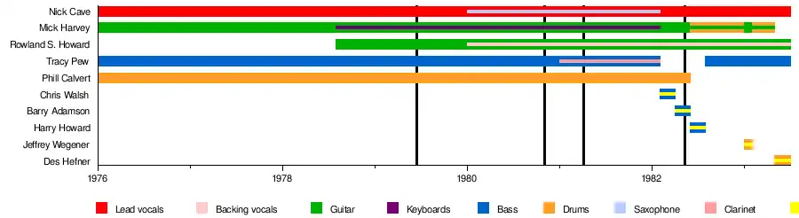 | Past members | Nick Cave Mick Harvey Tracy Pew Phill Calvert Rowland S. Howard |