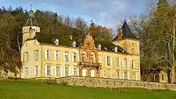 The castle was constructed in the 13th century by Gaspard-Florent de Breiderbach,[2] and built in an English Gothic style.[3] It was acquired in 1813 by the De Blochhausen family, who held the castle until 1935, when it came to be under the control of the De Broqueville family.