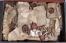 - ↑ Different versions of the charter exist. The text in this article draws on: Richard W. K. Bain, James, and George Grub, Bishop Gavin Dunbar's Hospital. Memorandum Dealing with the History and Records from the Foundation of the Benefaction and List of Title Deeds and Other Writs Relating Thereto, (Aberdeen: Rosemount P., 1931). and A M Munro, Records of Old Aberdeen, Vol.2 (New Spalding Club, Aberdeen, 1899). The original 1531 charter by signed by James V and part of the Gavin Dunbar Hospital in the University of Aberdeen