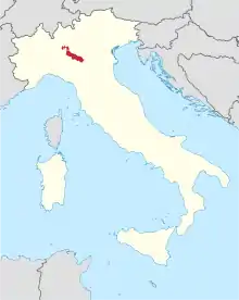 The Diocese of Cremona (Latin: Dioecesis Cremonensis) is a Latin Church ecclesiastical territory or diocese of the Catholic Church in northern Italy. It is a suffragan diocese in the ecclesiastical province of the metropolitan Archdiocese of Milan.[1][2] The bishop of Cremona's cathedra is in the Cathedral of the Assumption of the Virgin Mary.