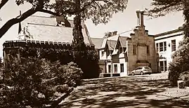 In 1927 additions and alterations designed by H. E. Ross & Rowe were approved (11/7/1927) for the removal of the timber stair and further subdivision of the picture gallery (a new concrete stair), a new kitchen at ground floor, new stone balcony to the north, alteration of the first floor accommodation, alteration to windows in the kitchen and servery. The southern block was divided into two parts, offered for sale to fund alterations but due to problems of land access the land was withdrawn from sale on 20/10/1927 having failed to reach its anticipated price.[19][1] In 1935 a chapel was constructed on the western facade by R. H. Ross & Rowe (supervising architect: R.Lindsay Little), the oriel window was partially removed at this time.[19] The house was later (1935) remodelled and extended at a cost of £10,000 by Prof. Leslie Wilkinson, head of the Architecture Faculty at Sydney University. Wilkinson had a marked effect on Sydney's architecture and built over 50 houses in the eastern suburbs.[1]