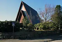 Biskopshavn Church (Norwegian: Biskopshavn kirke) is a parish church of the Church of Norway in Bergen Municipality in Vestland county, Norway. It is located in the Biskopshavn neighborhood in the city of Bergen. It is the church for the Biskopshavn parish which is part of the Åsane prosti (deanery) in the Diocese of Bjørgvin. The large brick church was built in a long church design in 1966 using plans drawn up by the architects Jakob Myklebust, Bjørn Simonnæs, and Helge Borgen. The church seats about 500 people.[1][2]