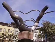 As part of mayor Reinhold Zundel's modernisation programme in late 1970s, the tram network was removed from the neighbouring Hauptstrasse, which became a pedestrian zone. The resulting changes led to Bismarckplatz's current layout, which included renovations to the facade of the Horten shopping centre and the installation of a fountain sculpture by the couple Matschinsky-Denninghoff (popularly known as the Spaghettisäule, "spaghetti columns"), in 1985. The renovated square was opened to the public on 6 July 1986.[8]