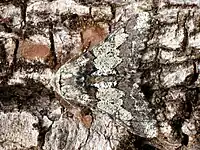 B. strataria demonstrates coincident colouration.[7] A cryptic disruptive pattern on the wings breaks up the outline, while the colouration blends well with the tree bark on which the oak beauty rests.[2]