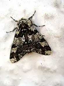Biston strataria, the oak beauty, is a moth of the family Geometridae. It is native to Europe, the Balkan countries and the Black Sea region as far as Asia Minor and the Caucasus. The species was first described by Johann Siegfried Hufnagel in 1767. B. strataria is found in a variety of habitats, but is mostly found in woodlands where it rests on the bark of trees, camouflaged by its mottled black and grey wings. The male has feather-like antennae while those of the female are more thread-like. The moth has a wingspan of 40 to 56 mm (1.6 to 2.2 in).