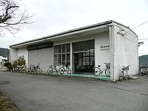 The station consists of one ground-level side platform serving a single-directional track, with the station building on the right side when facing in the direction of Okayama. The station is unattended.[2] When the station was opened, it had an island platform, but only one side of the platform was used for passenger operations, with the other side used exclusively for freight. The railroad tracks are slightly S-shaped at both ends of the station. This is a remnant of a plan to draw another railroad track on the south side of the existing track so that express trains could pass; however, as the Akō Line was later determined to be used only for local operations, this plan was never completed.