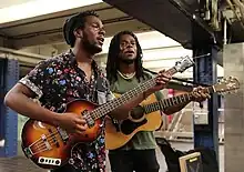 ![]() Amiri and Rahiem Taylor perform in the New York City subway in 2017 | |