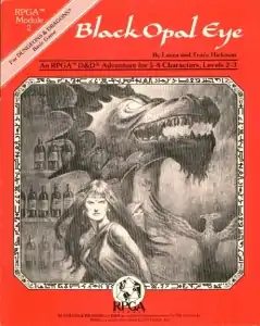 RPGA2 Black Opal Eye was written by Tracy and Laura Hickman, and published by TSR/RPGA in 1983 as a 16-page booklet with an outer folder.[1] The module was a limited edition, sold only to members of the RPGA.[1]